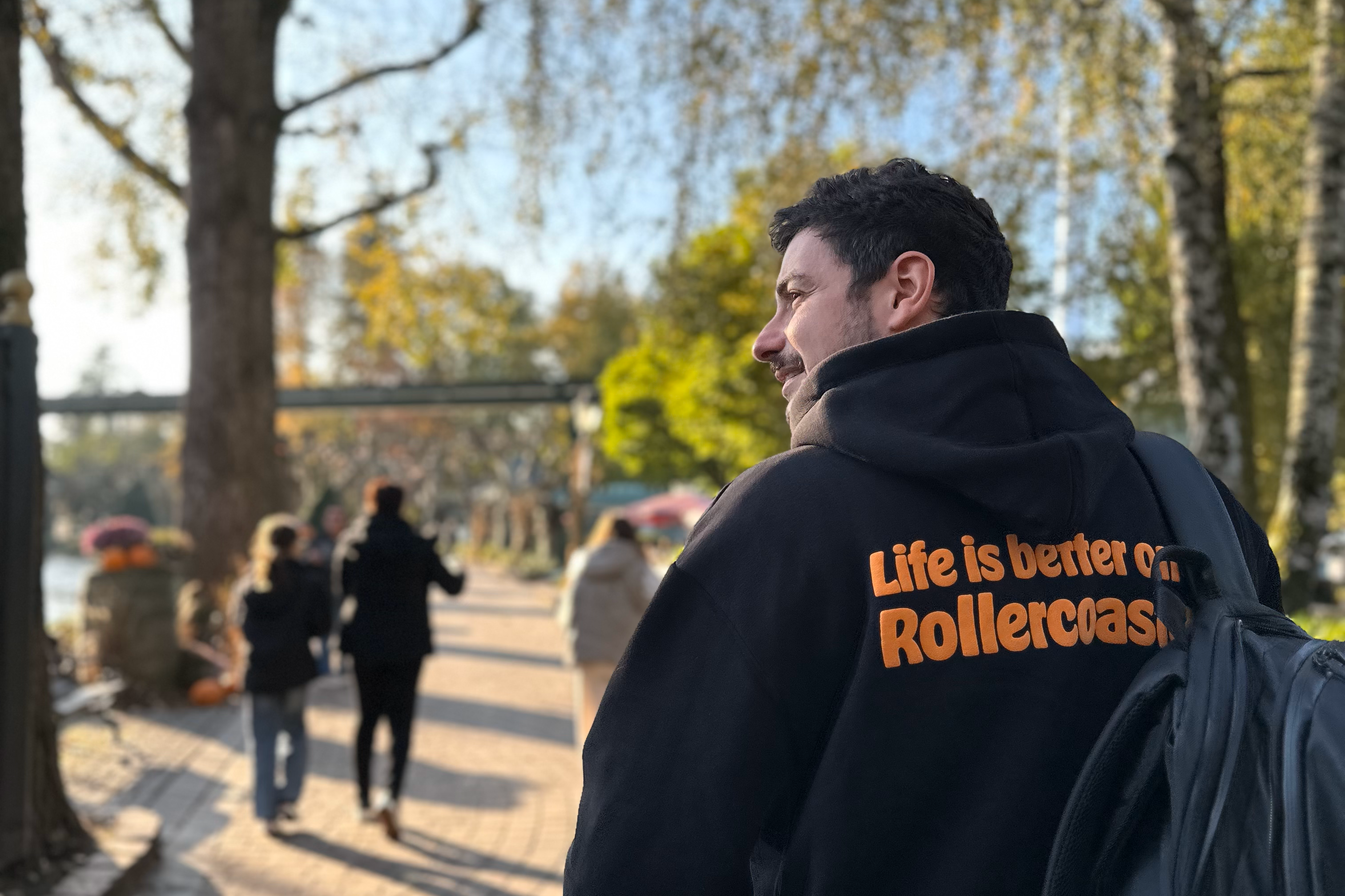 Ja, das wurden wir sehr oft gefragt. Hinter der Idee von Lucky Looping steckt Can. Manche sagen, er sei verrückt nach Freizeitparks – für andere ist das jedoch der Standard. Jahreskarten von Freizeitparks, Mitglied in Deutschlands erstem und größtem Verein für Kirmes- und Freizeitparkfreunde und jetzt auch Gründer der Modemarke Lucky Looping. Nicht einmal 4 1/2h Wartezeit vor der Voltron können ihn stoppen!